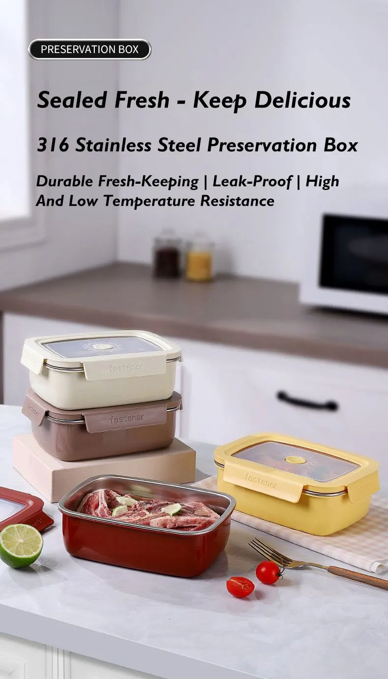 1000ml 316 Stainless Steel Insulated Fresh-Keeping Meal Prep Food Storage Containers Bento Lunch Box Microwave Heated Portable